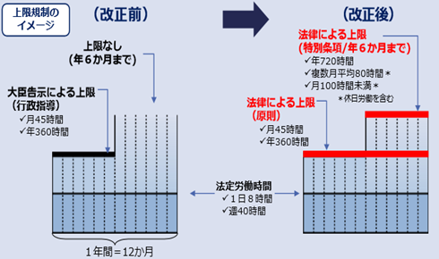 今回の改正によって、罰則付きの上限が法律に規定され、特別条項を設けても上回ることができなくなりました。